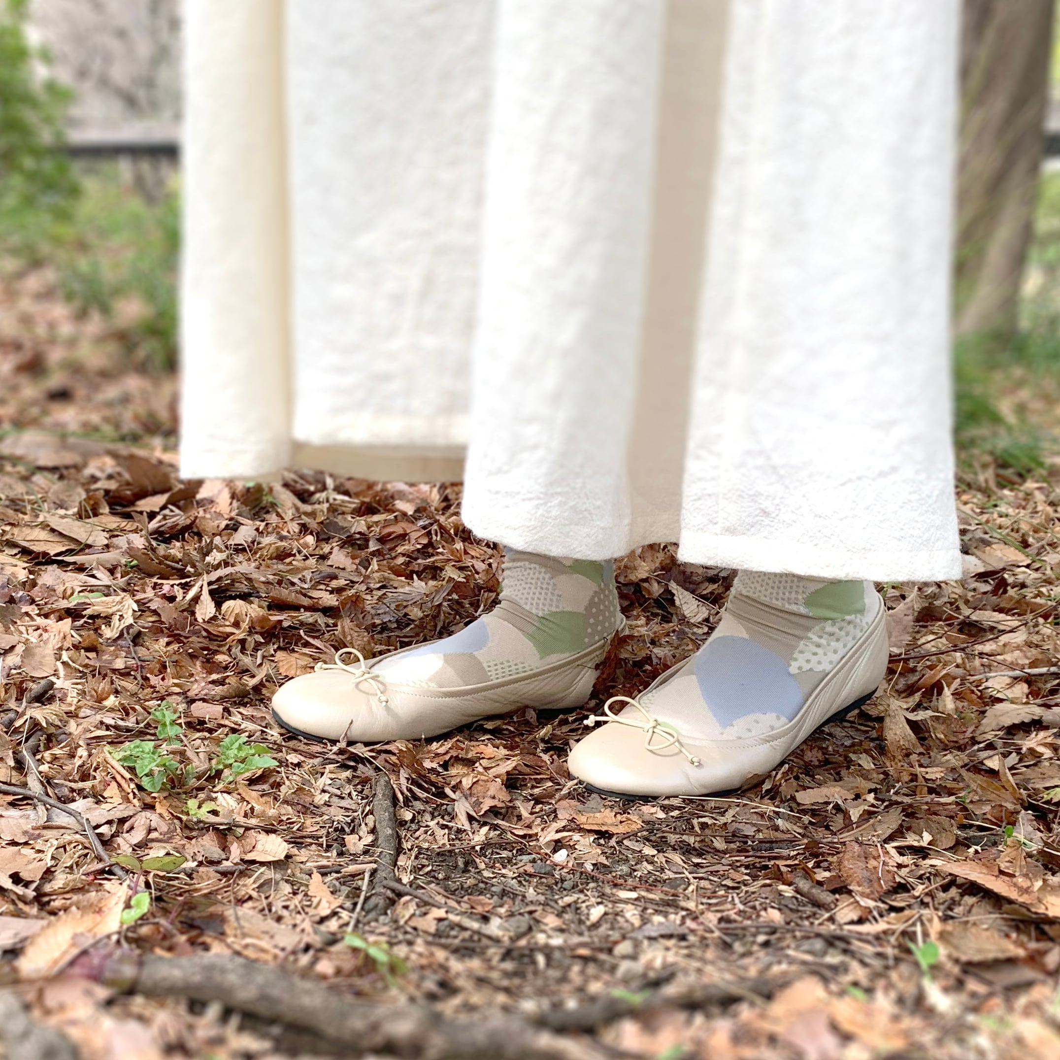 卵をモチーフにした可愛らしいデザインのソックスです。薄手で緩めの口ゴムを採用しているため、履いたときの圧迫感がなく、心地よいリラックス感を提供します。