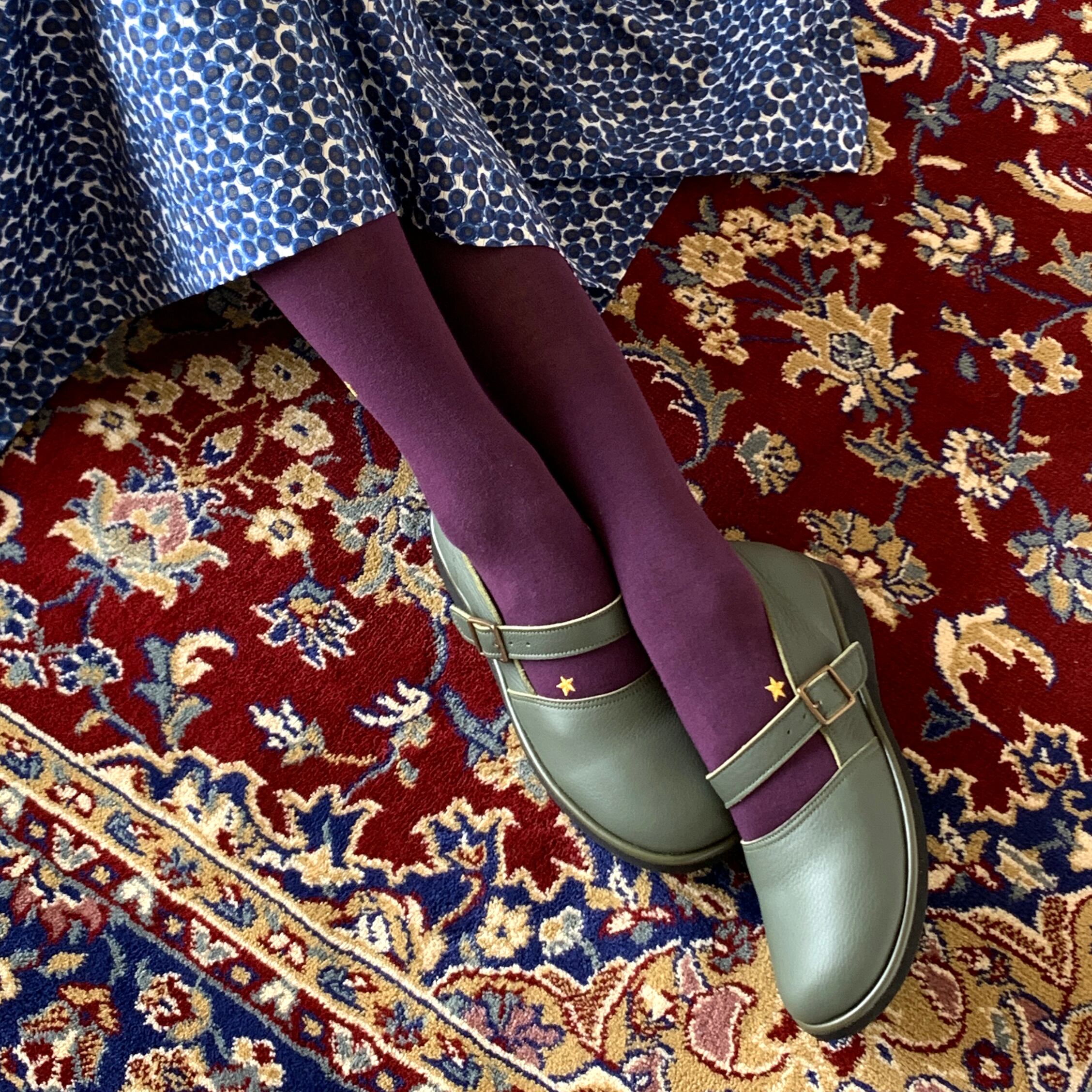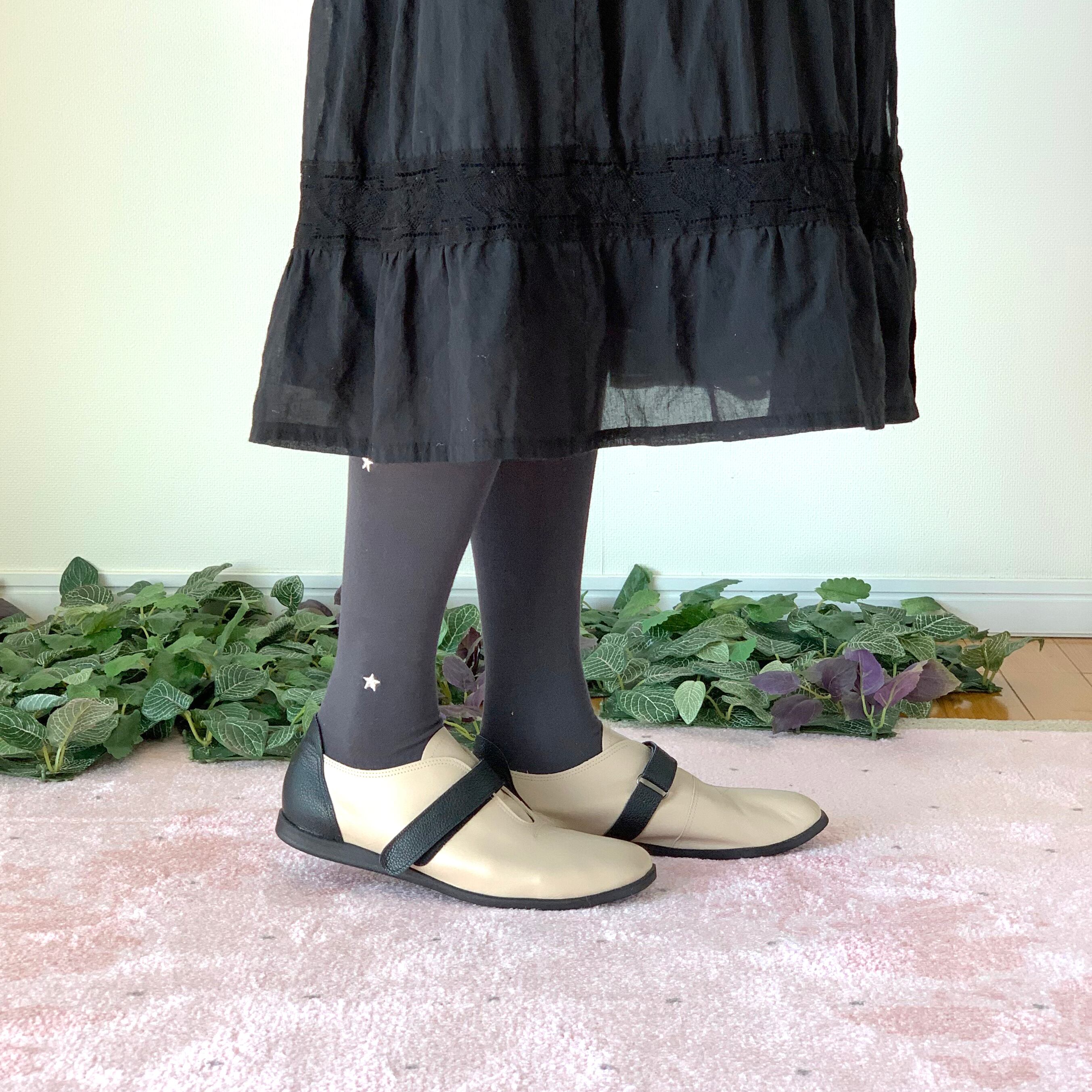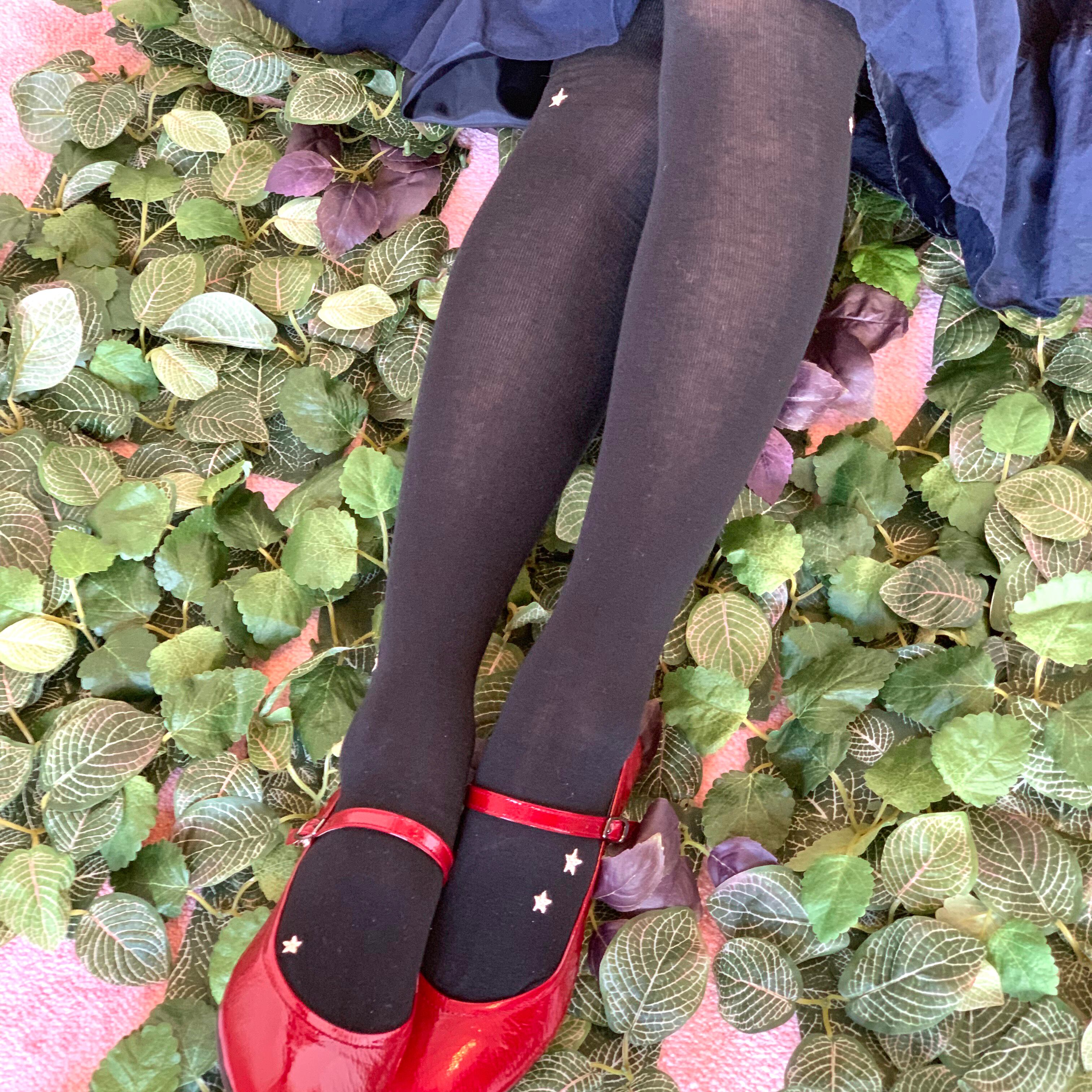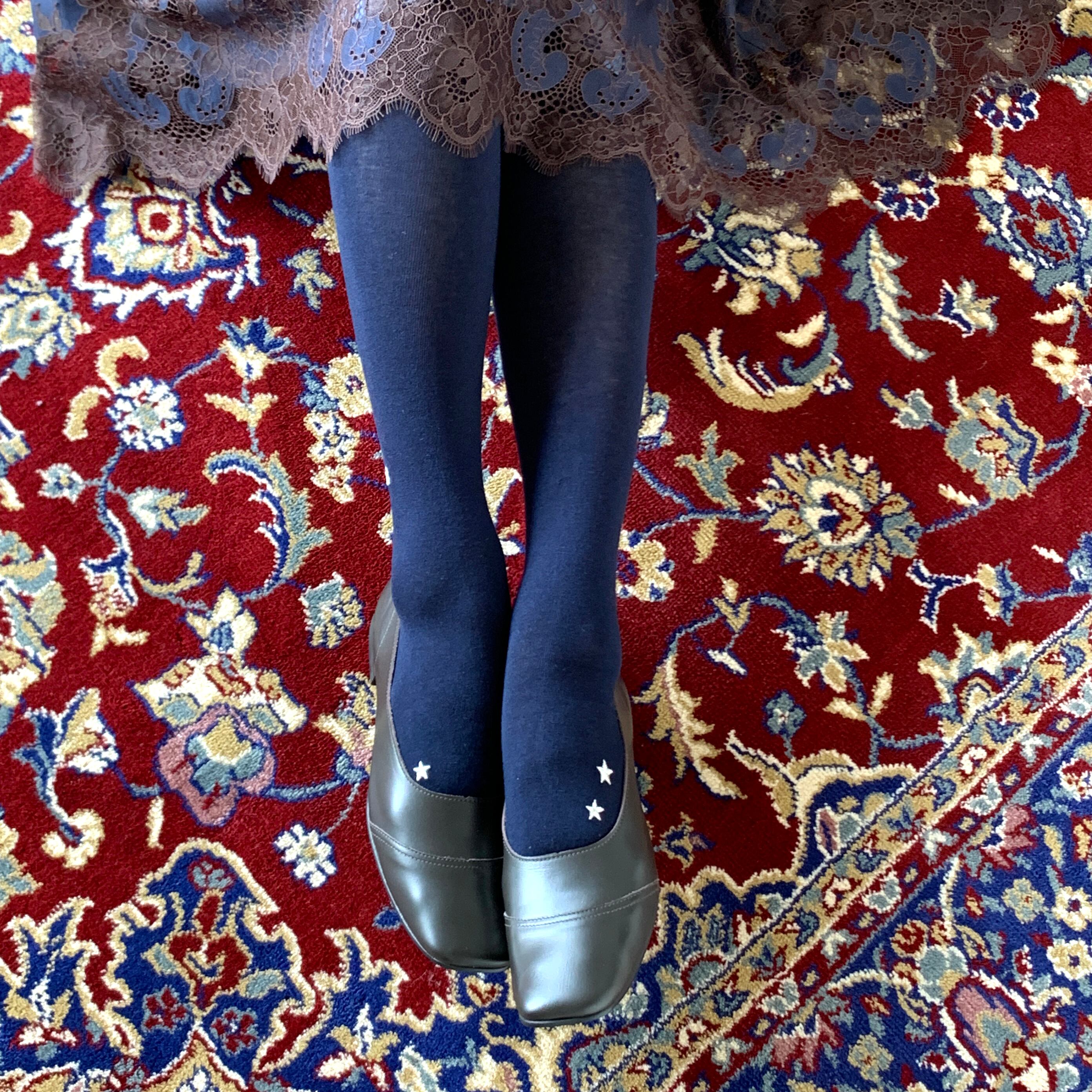 星の刺繍が散りばめられていて、ストラップシューズやバレエシューズに合わせると星が綺麗に出るようにしております。