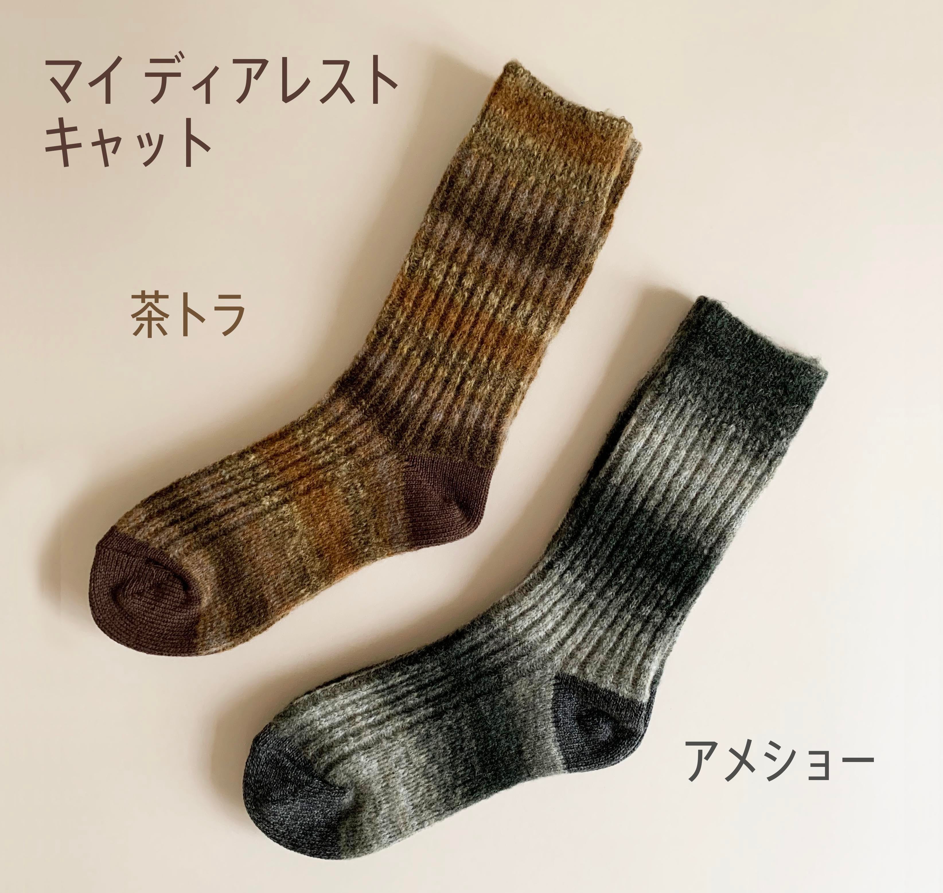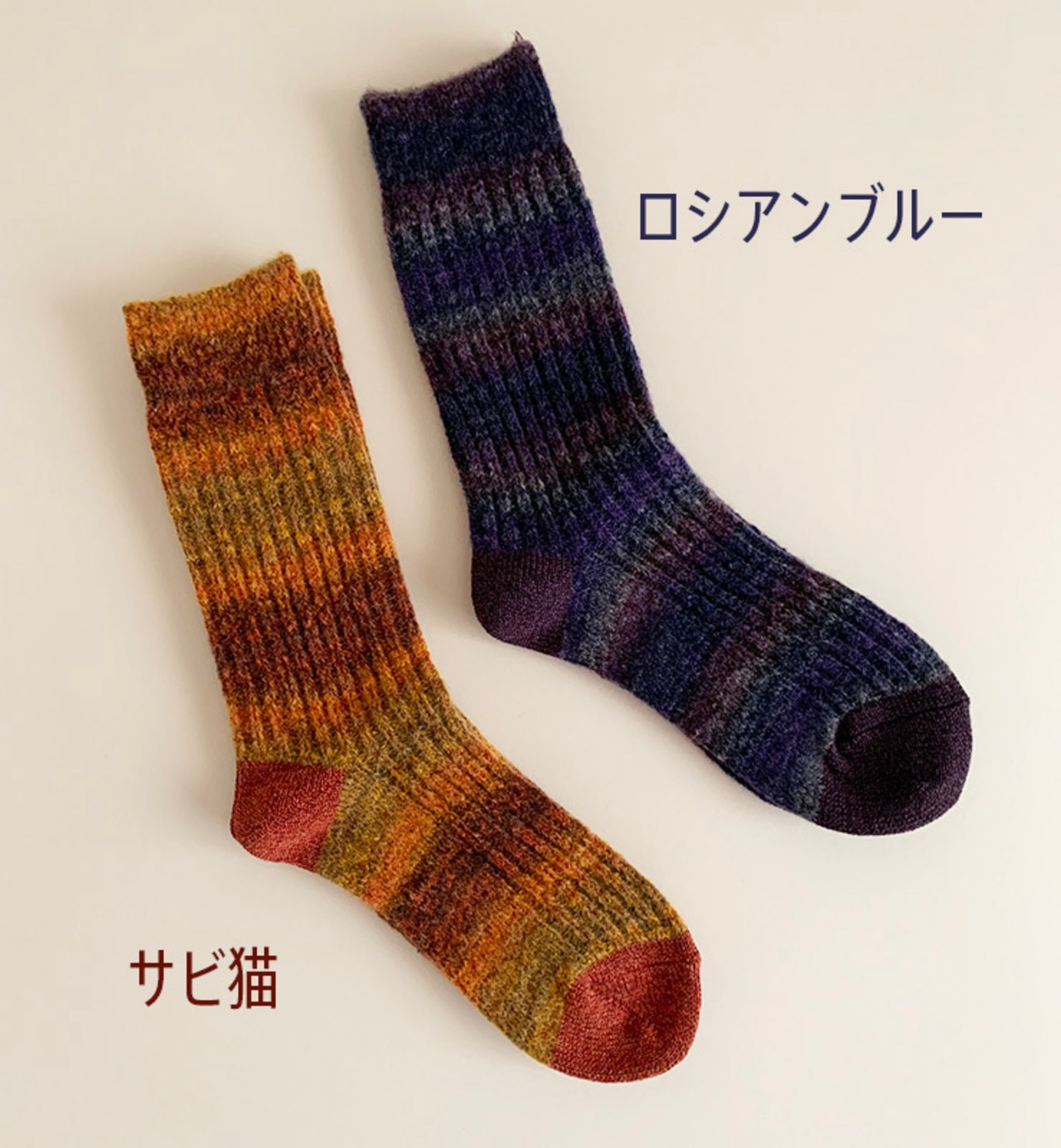ウールと綿の意匠撚糸を使用した温もりあふれるくつしたです。